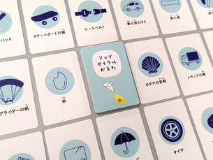 未活用な資源や捨てられてしまうものに、デザインやアイデアといった新たな価値を加えて、別の新しい製品を生み出す「アップサイクル」。このアップサイクルを遊びながら学ぶためのツールとして開発しました。さらに、アップサイクルの概要や各アップサイクル品の解説について、パネル展示で紹介しています。